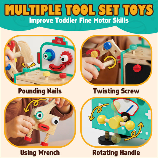 56 PCS Wooden Kids Tool Set, Toddler Tool Bench with Storage Box, Tool Set Educational Construction Toy for Toddler, STEM Montessori Toys for 2 3 4 Year Olds Boys