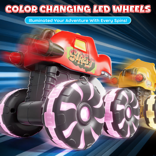3 Pack Monster Truck Toys, Toy Truck with Flashing LED Wheels, Toddler Toy Car, Press & Go Cars, Toddler Toys 1-3 for Boys Birthday Gift