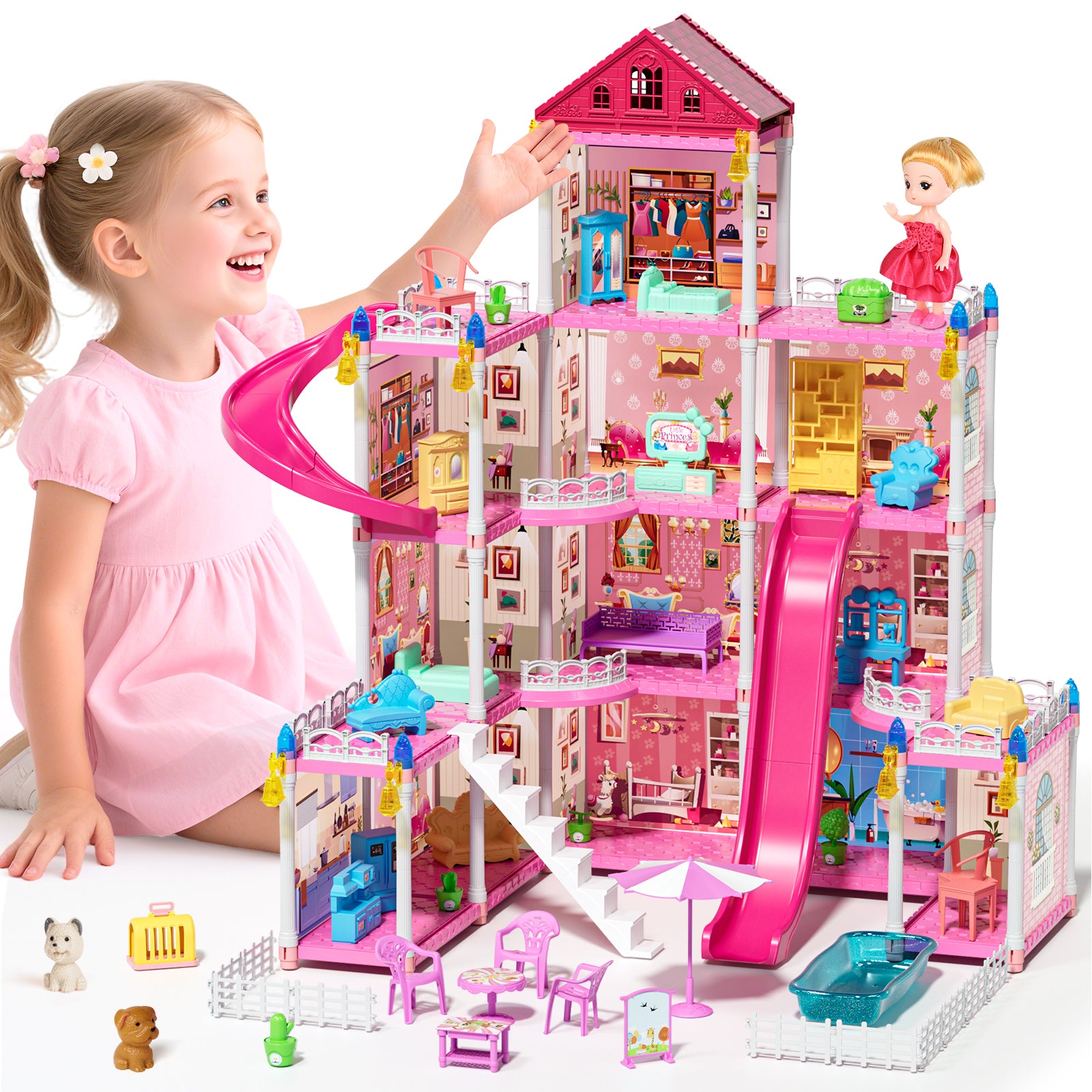 Doll House - Toys for 3 Year Old Girl Dream Dollhouse 12 Rooms Playhouse with LED Lights Furniture and Accessories, Pretend Play kit Doll House for Princess Age 3 4 5 6 7