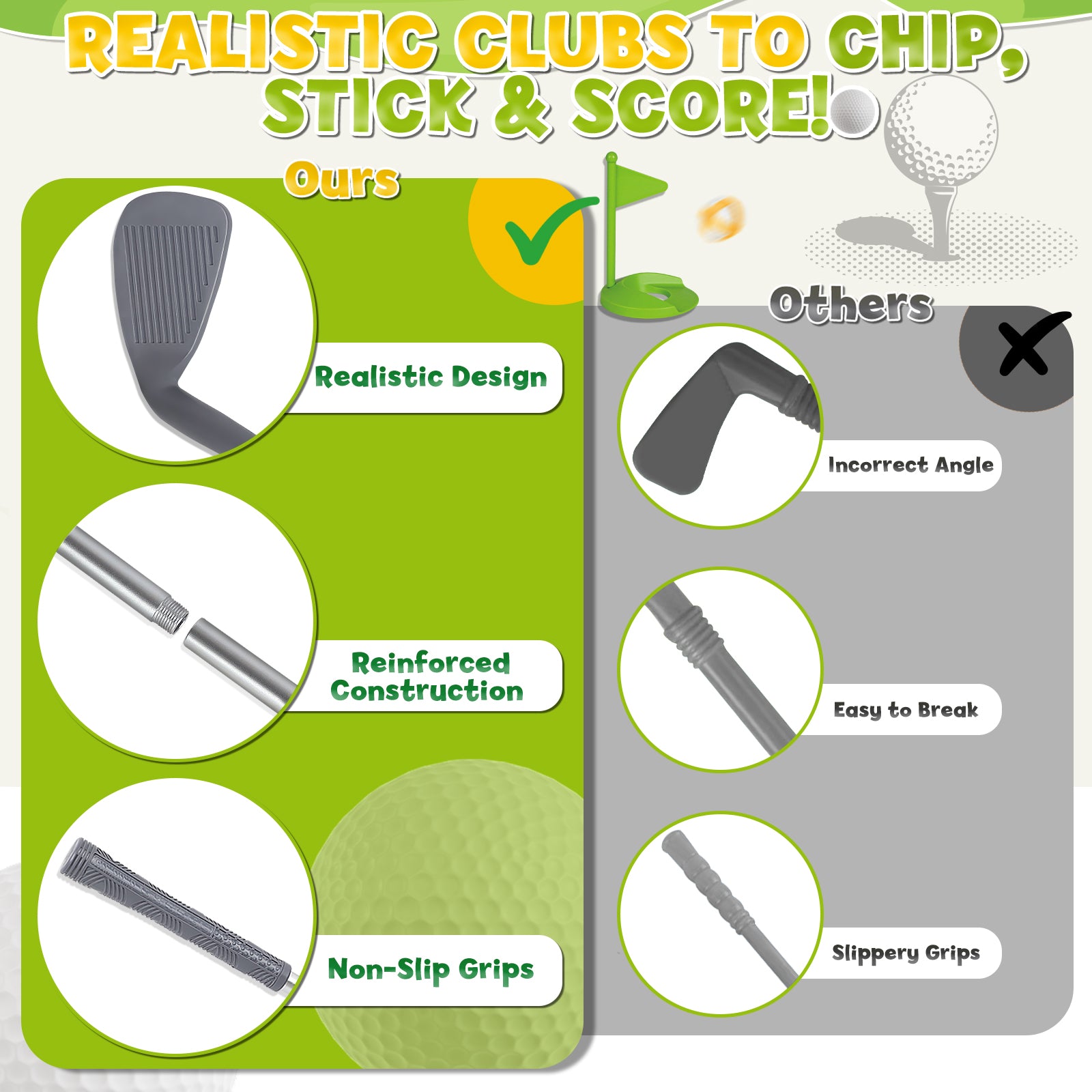Easy Setup & Compact Storage:Kids will love the hassle-free assembly - simply unfold the tent, secure with ground spikes, and play! The lightweight components are easy for kids to handle themselves. When playtime ends, everything neatly packs into the included storage bag - clubs, balls, tent and all! The compact folded size makes it perfect for small spaces or travel. No complicated instructions or tiny parts - just quick fun whenever the golf mood strikes!
