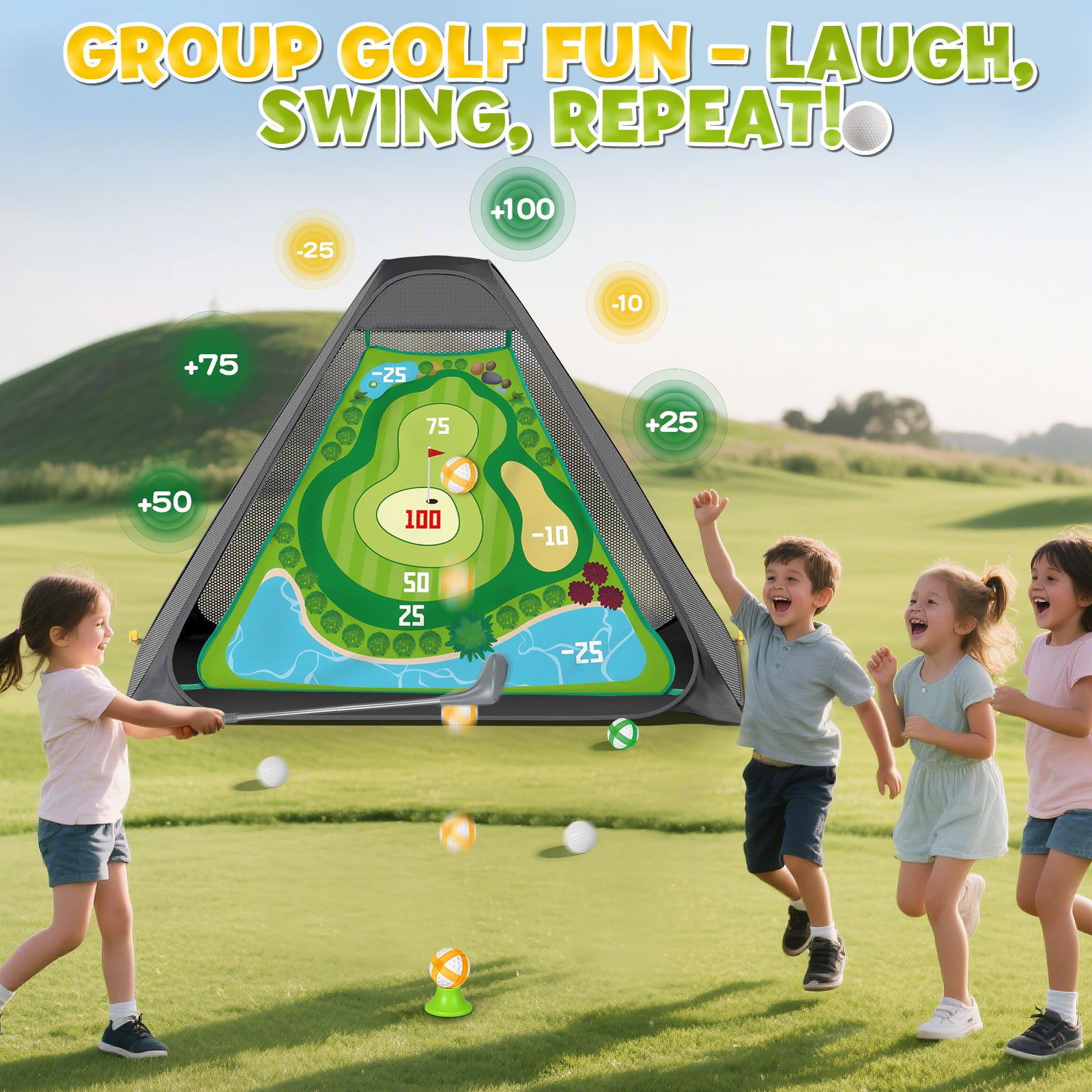 Two Exciting Play Modes for Varied Challenges: Kids can enjoy two different ways to play: (1) Sticky Target Mode - Set up the tent, attach the sticky target, and swing away! Missed shots stay in the tent or stick to the target - no chasing balls! (2) Classic Putting Mode - Lay out the practice mat and use the putter to sink shots. Great for solo practice or friendly competitions, these modes help develop golf fundamentals while keeping play fresh and fun. Perfect for building confidence and skills through varied challenges.