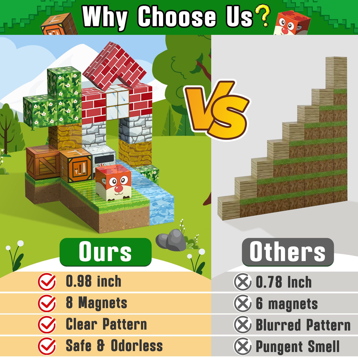 - Strong Magnets, Safe Design: Unlike ordinary magnetic toys, our cubes have built-in strong magnets for stable structures. These building blocks are sized for small hands with smooth, rounded edges, making them a safe and fun toy for 4-8 year old boys and girls to explore magnetism.