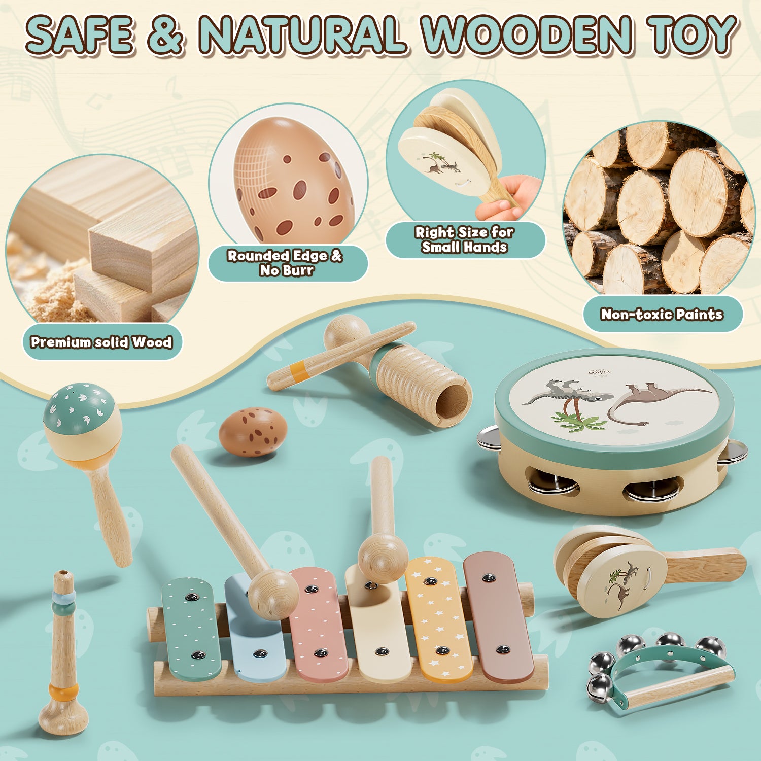 Musical Instruments for Kids, 1 Year Old Toys, Baby Musical Toys for 1 2 3 Toddler, Wooden Musical Toys with Xylophone & Tambourine, Dinosaur Toys, Montessori Learning Toys for 1 Year Old