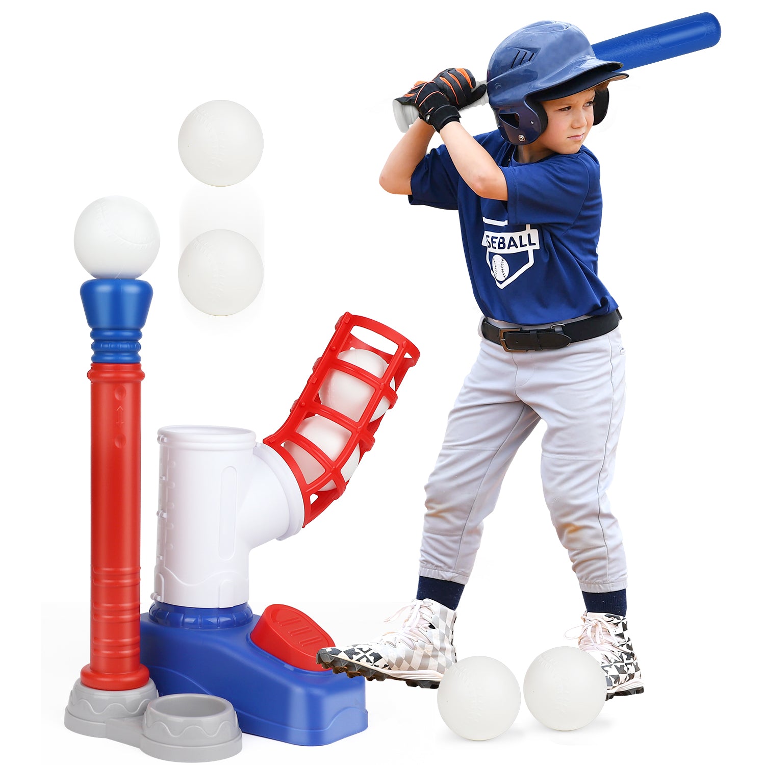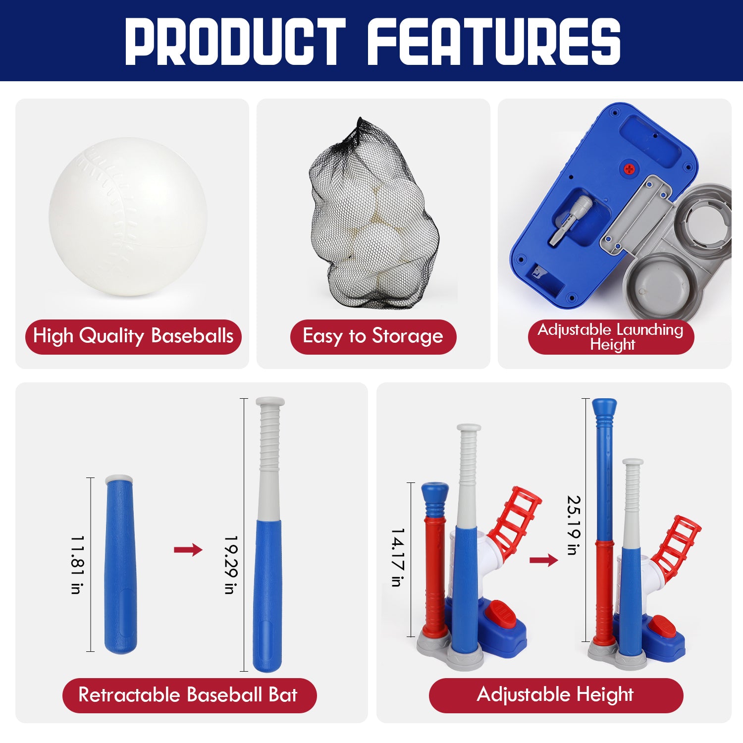The 2-in-1 T-Ball Set includes everything your child needs to start playing baseball right away. The set features a step-on pitching machine, a retractable baseball bat, a T-ball stand, 6 balls, and a convenient storage bag. Whether your child prefers hitting a stationary ball or stepping on the pedal to launch the ball into the air, this set offers both options for double the fun and learning.- ⚾Customizable Pitching Height