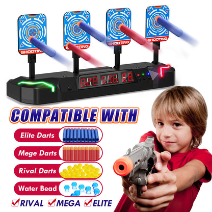- Ultimate Nerf Target Set: Step up your Nerf game with our newest target for 2024! Equipped with 4 targets and 3 LED screens, this digital target offers a thrilling shooting experience like no other. Complete with 20 foam darts and 2 bracelets, it's perfect for Nerf enthusiasts of all ages.