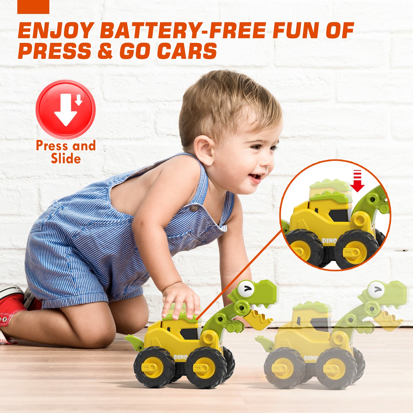 Toys for 1 2 3 Year Old Boy Girl, Construction Vehicle Dinosaur Toy Cars For Toddlers, Press And Go Toy Cars, Pull Back Cars Baby Toys