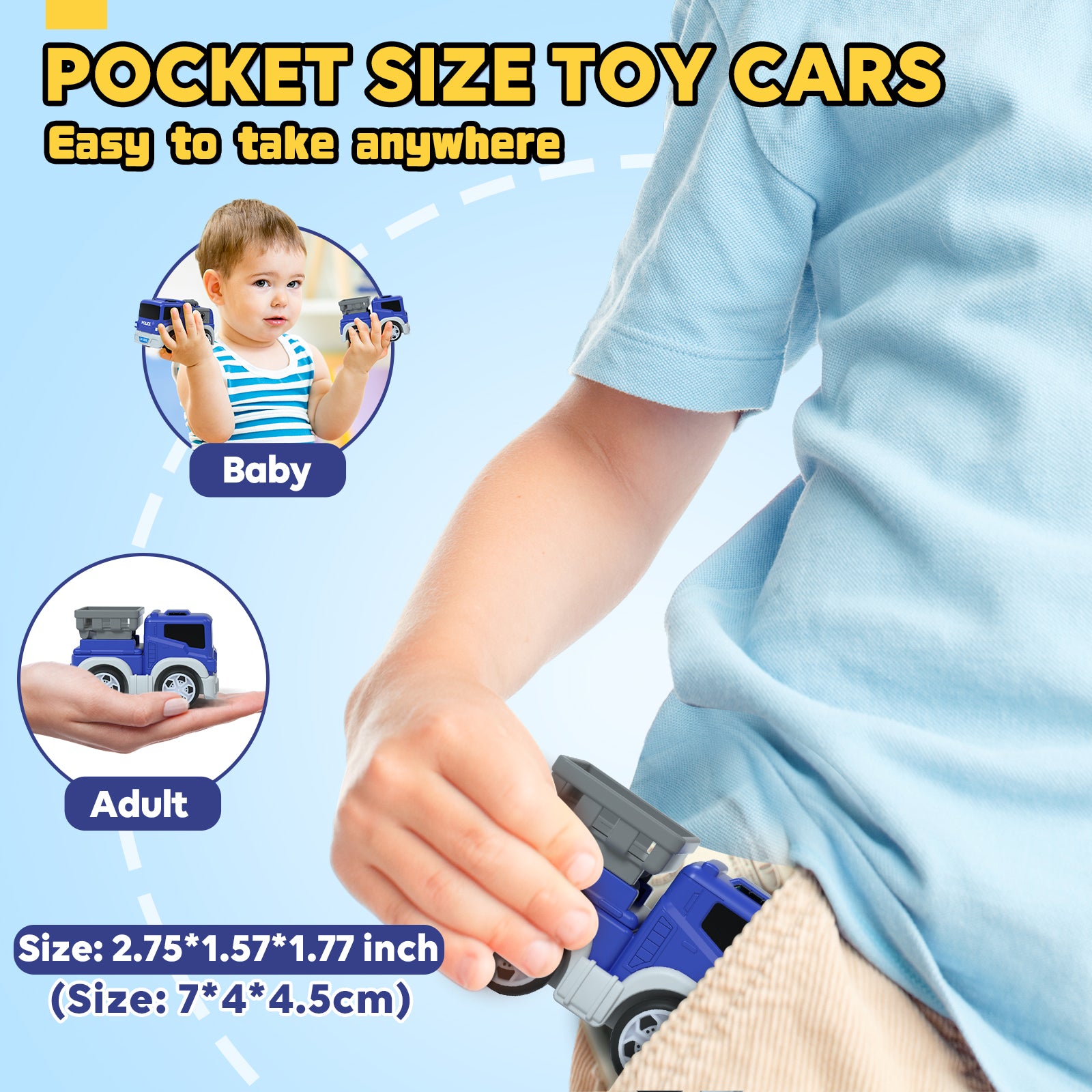 This toy set is the perfect size for my toddler's small hands. He can easily hold and play with the cars and truck, and he loves pushing them around the house. The vehicles are lightweight but sturdy, and the bright colors are very appealing to him. It's a great toy set for little hands that need something easy to manipulate.