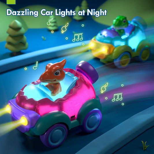 2 Pack - Dinosaur Remote Control Car for Toddlers, Toys Car for 2 3 4 Years with Lights & Music, RC Cars for Toddler Toys, 2 3 4 Year Old Boy Toys