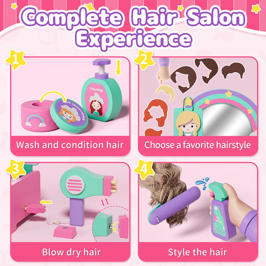 32Pcs Hair Salon Toys Salon Set, Toddler Girls Vanity for 3 Year Old Girls Pretend Play Doll Hair Stylist Toy Kit with Blow Dryer, Barber Costume Apron and Other Accessories for Kids Toddler 3-5